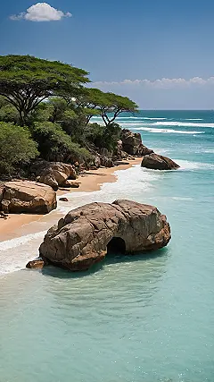 Forget what you thought you knew about African nature; this isn’t just a savanna full of lions looking for dinner! This picture is like someone cranked the ‘awesome’ dial all the way up. Just look at that water! It’s so perfectly turquoise, it almost looks like it came straight out of a painting, but nope, that’s just nature showing off her best blue-green filter. You can practically hear the waves doing their chill-out thing, gently rolling onto that golden sand. It definitely makes you want to ditch your homework and grab a snorkel, doesn’t it?