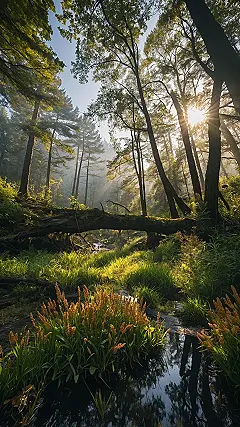 And check out that fallen log, just casually chilling across the stream like a natural bridge, probably waiting for some adventurous woodland creature to use it as a shortcut. It’s so perfectly placed, you’d think an interior designer for forests picked it out! Down below, the water is so calm, it’s basically a mirror, reflecting all that stunning greenery and giving us double the pretty. If I were a tiny frog, I’d definitely set up my dream pad right here amongst that glowing green grass, living my best life and maybe even trying to photobomb one of these ‘best nature photos’ myself!