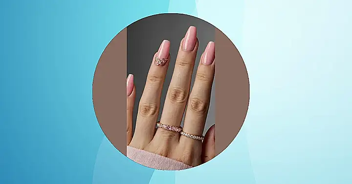 But wait, there’s more! Just when you thought these nails couldn’t get any fancier, BAM! That ring finger hits you with some serious sparkle. It’s like a tiny, fabulous party happening right on your nail, complete with its own fancy butterfly or sparkly crown, ready to outshine all the other accessories. And don’t even get us started on those rings! One pink and one sparkly clear, they’re basically the nail’s best friends, completing the whole ‘I woke up like this, but also spent ages looking amazing’ vibe. You’ll be waving hello to summer, and everyone will be too busy admiring your hand to notice you’re secretly just trying to avoid chores.