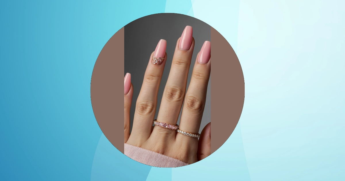 But wait, there’s more! Just when you thought these nails couldn’t get any fancier, BAM! That ring finger hits you with some serious sparkle. It’s like a tiny, fabulous party happening right on your nail, complete with its own fancy butterfly or sparkly crown, ready to outshine all the other accessories. And don’t even get us started on those rings! One pink and one sparkly clear, they’re basically the nail’s best friends, completing the whole ‘I woke up like this, but also spent ages looking amazing’ vibe. You’ll be waving hello to summer, and everyone will be too busy admiring your hand to notice you’re secretly just trying to avoid chores.