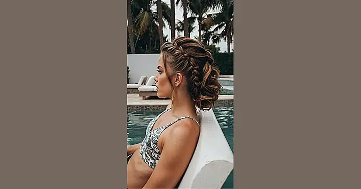 Let’s ditch the traditional bun and explore a fun and fashionable alternative for your pool escapades. How about a fishtail braid that exudes effortless elegance? To achieve this look, divide your hair into two sections and begin braiding with small, intricate weaves to mimic a fishtail’s texture. Secure the end with a stylish hair tie or a colorful scarf for a playful touch. This braid not only adds a touch of sophistication to your poolside ensemble but also keeps your hair neatly in place, allowing you to enjoy a carefree day in the sun without worrying about constant touch-ups.