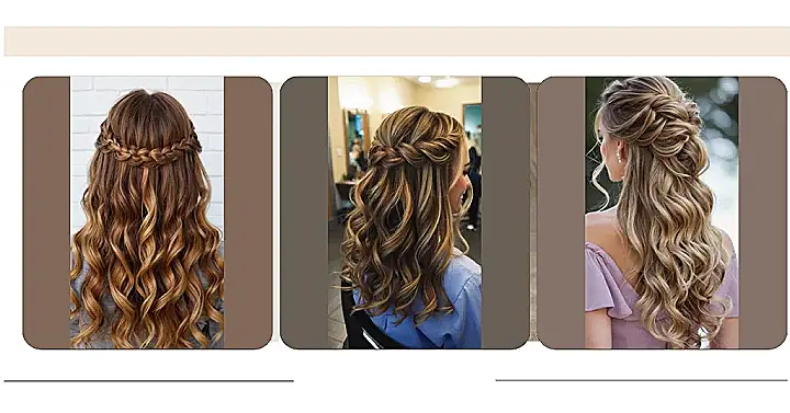 Think outside the box for your prom hair by opting for a chic half-up hairstyle that exudes sophistication with a modern twist. Imagine a sleek and polished half-up hairdo featuring intricate braids intertwined with soft waves, offering a contemporary yet timeless look that complements any outfit choice. This versatile style can effortlessly transition from the dance floor to photo ops, ensuring you look and feel your best throughout the memorable night. Let your hairdo be the perfect finishing touch to your prom ensemble, adding an extra dash of glamour to your overall look.