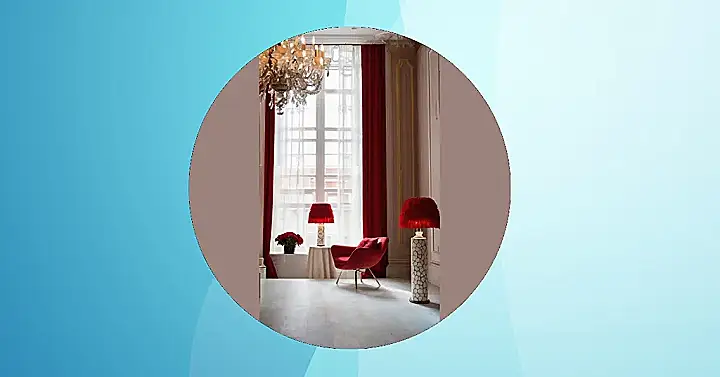 This room is like stepping into a fancy, grown-up candy store! Everything’s decked out in red – from the dramatic curtains that look like they’re ready for a stage play to the fluffy, feathery lampshades that are almost too pretty to touch (almost!). Even the comfy chair is ready for a cozy movie night, and that chandelier? It’s like a dazzling firework show frozen in time!