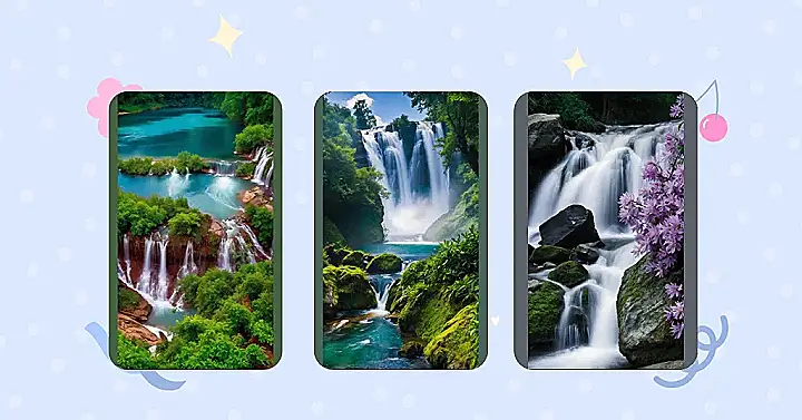 The cool hues of blues and greens in the design create a sense of calm and serenity, like a hidden oasis tucked away from the chaos of the world outside. With each passing moment, the waterfalls seem to come alive, beckoning you to take a moment to pause, breathe, and simply be. Whether you choose to sit and meditate in their presence or let your mind wander to distant horizons, these wallpaper concepts offer a peaceful escape from the hustle and bustle of daily life.