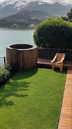 This little plot proves that good things come in perfectly proportioned packages. Forget the stress of mowing a football field; here, your biggest chore might be deciding if you want to soak in that warm water while gazing at snow-capped mountains or just soak up the sun on your perfectly manicured lawn. It’s a high-achieving small garden, showing off its big personality and proving that sometimes, less grass means more hot tub – and who can argue with that math?
