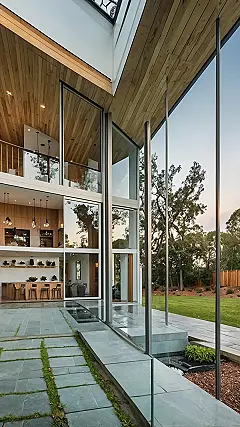 And get this – the walkway looks like it’s made of giant, super-polished candies! Okay, maybe not *candies*, but it’s so smooth and stylish, I’m pretty sure you could slide across it on your socks without a single scratch. Seriously, just picture yourself walking into this stunning entryway after a long day at school – talk about instant stress relief! Between the gorgeous architecture and the totally chill vibes, this house is a total home run.