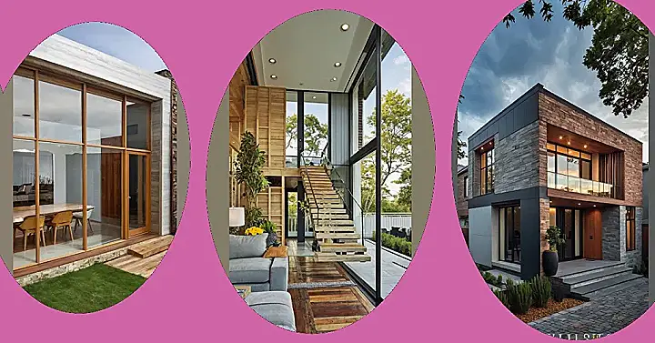 This isn’t your grandma’s renovated house! Forget wallpaper and floral patterns – this place is straight out of a sci-fi movie (but in a really good way!). Imagine walking up those sleek steps, feeling like you’re entering a super-modern spaceship instead of just a home. The mix of cool grey stone and warm brown wood is seriously stylish, and those huge windows make the whole thing look bright and airy – perfect for showing off your awesome new robot vacuum cleaner!