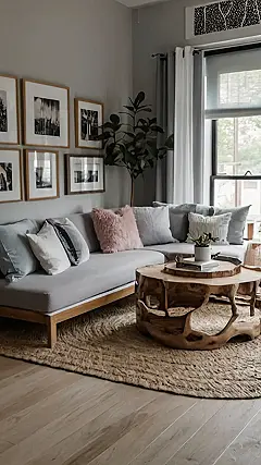 This room screams, “Chill vibes only!” Seriously, if stress could be a color, it definitely wouldn’t be anywhere near this beige-tastic paradise. I can already picture myself sprawled on that comfy couch, surrounded by enough pillows to build a fort of relaxation. You could practically meditate on the sheer calmness of this place, or at least binge-watch your favorite show without feeling guilty.