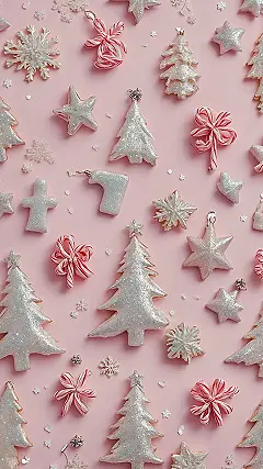 Looking at this wallpaper, you just know Christmas got a seriously stylish glow-up! Forget boring old red and green; we’re talking full-on Barbiecore fabulousness with every single glittery snowflake, star, and Christmas tree popping against that dreamy pink background. It’s like all your festive favorites got dressed up for a fancy party, sparkling so much they could practically light up the whole room, making your phone screen the most dazzling accessory this holiday season.