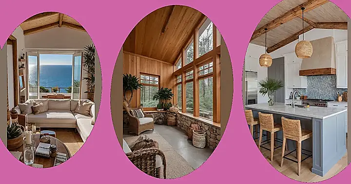That’s not all, though! Those comfy wicker chairs look like they’re practically begging you to sink in with a good book, or, let’s be honest, your phone for some serious TikTok scrolling. All the leafy green plants are working overtime to bring the outdoor vibes inside, and those cool woven baskets are just waiting to hold all your snacks for an epic movie marathon. This place definitely nails the ‘lake house decor’ vibe – super natural, comfy, and ready for maximum relaxation after a long day of… being a grade 9 legend.