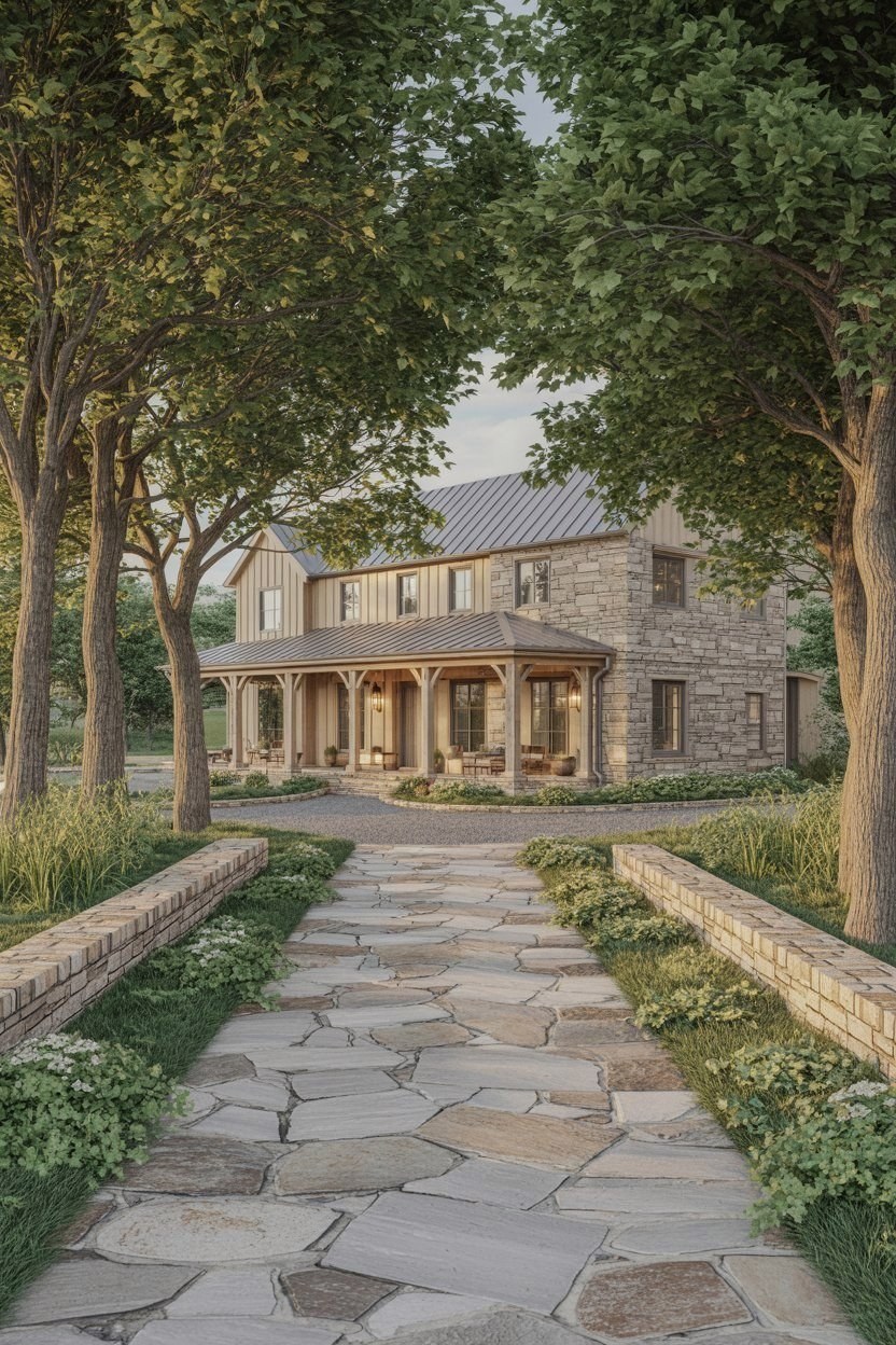 #3 Farmhouse Exterior Stone Pathway: Country Dream Home Design