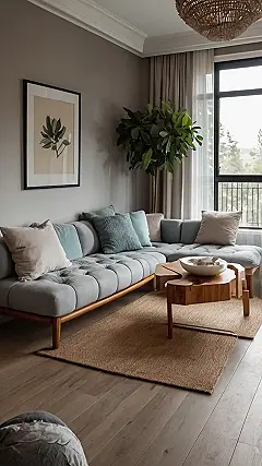 Imagine walking into this room after a long day of, like, *everything.* That couch? It’s practically begging you to collapse onto its pillowy goodness. Forget those hard, uncomfortable sofas your grandma has – this is pure, unadulterated relaxation. The colors are super calming, and with that massive plant in the corner, it’s basically a zen garden for your living room. All that’s missing is a bowl of popcorn and a binge-worthy show, and boom, instant happiness.