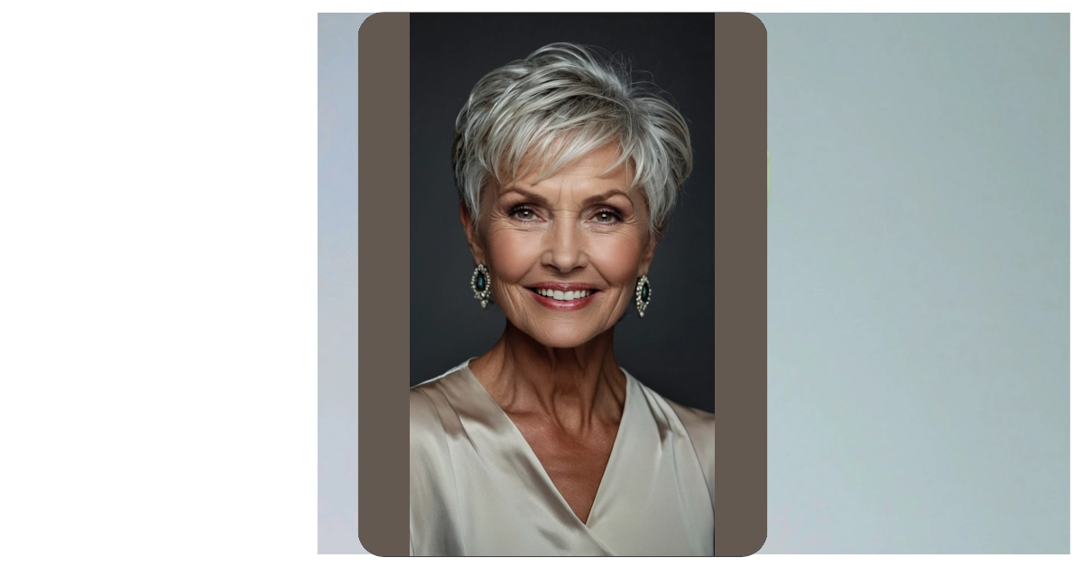 The woman in this picture is rocking a hairstyle that’s as cool as she is! It’s short, sleek, and a bit sassy. You know, like a silver fox who’s not afraid to let her hair down and show the world she’s got a bit of spice in her life! Her style is like saying, “I’m older, wiser, and I’m not afraid to embrace my natural beauty.”