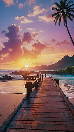 Staring at this tropical wallpaper feels less like looking at a picture and more like a tiny portal just opened up on your screen, ready to whisk you away. You can almost smell the salt air and feel the warm breeze coming off that impossibly blue water. That wooden pier is basically begging you to ditch everything and walk straight into the sunshine. It’s the perfect reminder that even if you’re stuck inside, your phone or computer can be your secret getaway car to paradise, palm trees included!