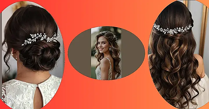 So, you’re getting hitched and rocking those gorgeous curls? This hairstyle is like a “business in the front, party in the back” kind of deal. It’s all classy and elegant with the half-up ‘do and sparkly headband, but then BAM! You’ve got a cascade of curls ready to hit the dance floor. It’s the perfect combo for a bride who wants to look amazing but also wants to bust a move later.