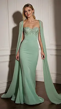 And let’s talk about those epic flowing cape sleeves! They’re not just sleeves; they’re your personal superpower cape, ready to make every entrance and exit feel like a red-carpet moment. You’ll practically glide through the room, maybe even feeling like a low-key superhero (or at least someone who definitely aced their outfit choice). Plus, that detailed sparkly top adds just enough extra glam to make you feel like the most stylish person there, ready to hit the dance floor or subtly dramatic-wave across the room. Just try not to get them caught on the cake table!