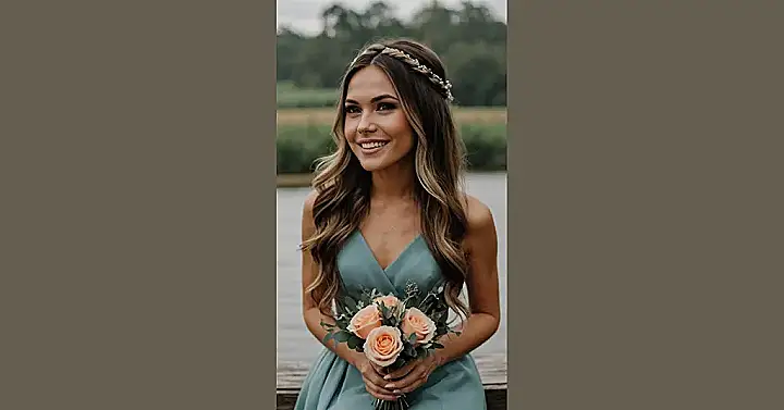 This hairstyle is seriously dreamy! Imagine yourself as a bridesmaid, rocking this look. It’s all loose, wavy perfection, like you just stepped out of a fairytale (but way less “princess-y” and way more “ready to party”). The little sparkly bits woven in are like the secret ingredient to making it totally magical, and it’s low-key enough to be super comfortable all day long. No stuffy updos here, just gorgeous, relaxed waves that are perfect for dancing the night away.