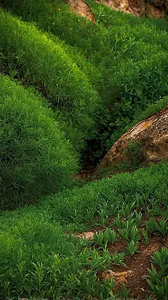 Look at those awesome wavy hills of green! They look so soft and inviting, you almost want to dive in and roll all the way down, maybe even pretend you’re an adventurous ant on a secret mission. And what about that mysterious dark spot peeking out from behind the big earthy rock? It looks like the entrance to a hidden hideout or maybe just where a very sleepy squirrel keeps his emergency snack stash. This view is packed with so much depth and natural beauty, it’ll make your friends totally jealous of your new, seriously cool background. Get ready for compliments, because this one’s a winner!