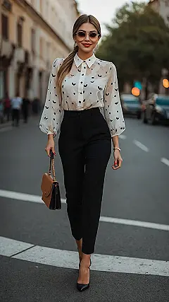 Hitting up New York Fashion Week in 2025 means you need an outfit that can handle everything from a sudden downpour (it’s NYC, after all!) to a spontaneous dance-off at an after-party. This ensemble is perfect for looking totally put-together while secretly being able to move freely. Imagine trying to catch a taxi in super tight pants – nightmare! But these flowy trousers mean you can sprint if needed and still look like you just stepped off a runway. It’s the kind of smart-yet-snazzy outfit that lets you tackle the concrete jungle with a smile, ready for whatever fashion madness comes your way.