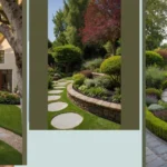 With those winding stone steps disappearing into the greenery, you just know they lead somewhere super cool, maybe even to a hidden fort or a secret reading nook. This whole setup screams “relax here and forget your homework worries.” It’s the kind of place where even the weeds probably politely ask permission before growing, and the birds sing in perfect harmony. You just know whoever lives here has the most epic garden parties, or at least some very happy squirrels living in their incredibly well-designed slice of paradise.