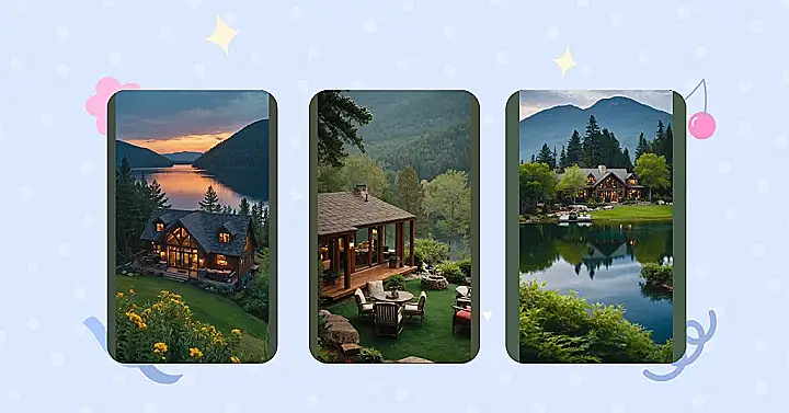 Nestled at the edge of a tranquil lake, surrounded by towering pine trees and the soothing sounds of nature, a rustic lakeshore cabin beckons with its charm and coziness. Inside, weathered wood beams overhead, a crackling fireplace casting a warm glow, and inviting plaid armchairs inviting you to sink in and relax. The scent of freshly brewed coffee mingles with the crisp air from the open windows, bringing a sense of peace and harmony to this idyllic retreat.