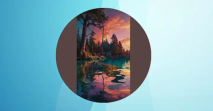 This picture is like a scene from a dream! It’s got a lake, trees, and a sunset that looks like it was painted by an artist. The sky is a mix of pink and orange, like a giant cotton candy cloud. The trees are standing tall, like they’re the guards of this peaceful place. And the water is so still, it’s like a mirror, reflecting the beautiful sky and making it look like the sunset is happening twice! It’s like someone took a picture of heaven and decided to share it with us.