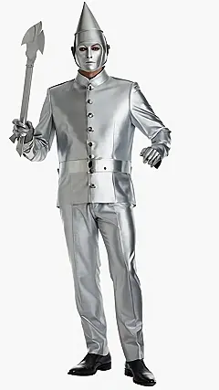 This Tin Man is rocking the silver look, and he’s totally ready to hit the yellow brick road! He’s got the whole suit going on, from the shiny jacket to the matching pants, and even a cool hat! But let’s be honest, his face mask is kind of scary. It’s like he’s saying, “Don’t mess with me, I’m a metal machine!” But don’t worry, he’s still friendly – even if he does look a little bit like he’s from a robot movie. He’s ready to help Dorothy find her way home, one shiny step at a time.
