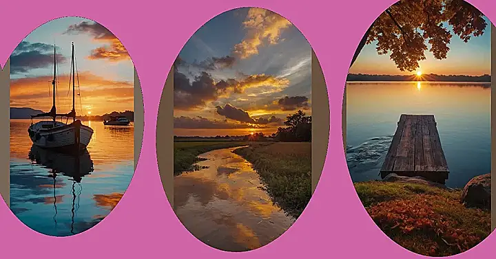 This picture looks like a scene straight out of a movie! The sun is setting, painting the sky with gorgeous colors of pink, orange, and purple. It’s like the sun is giving a grand performance, and the water is its stage! The reflection of the sun on the water makes it sparkle like a million tiny diamonds.