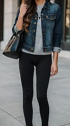 So, you wanna rock leggings this spring but don’t wanna look like you just rolled out of bed? Totally get it! This outfit’s got you covered. Toss on a basic tee, your comfiest denim jacket, and bam – instant cool-girl vibes. Bonus points for those fresh kicks! You’ll be ready for anything from chillin’ with friends to actually doing… stuff.