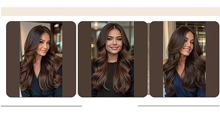 Imagine the possibilities! You could style it straight and sleek for a sophisticated look, or let it loose in those gorgeous waves like the model in the picture. You could even try braids, ponytails, or a messy bun – this hair color is versatile enough to work with any hairstyle. This dark chocolate brown shade is seriously trendy and classic at the same time, so you’d always look stylish. Plus, it’s a perfect shade for any season, because who doesn’t love the richness of chocolate, no matter what the weather?