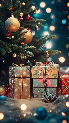 **Title:** iPhone Xmas Wallpaper: Presents Under the Twinkling Tree!