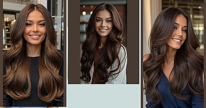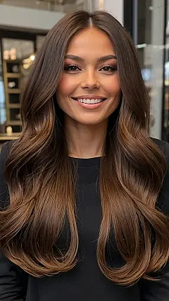 This picture is like a walking, talking advertisement for dark chocolate brown hair! Seriously, those luscious locks are so shiny and wavy, they practically make you crave a triple-chocolate fudge brownie. I bet getting that hairstyle is like trying to find the perfect chocolate chip in a cookie — you have to hunt for the best one, but the search is totally worth it! This girl’s hair is the definition of hair goals—I mean, who wouldn’t want to run their fingers through that silky perfection?