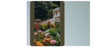 But wait, there’s more! Notice that stone wall in the foreground? It looks like it’s guarding a secret entrance to an even more amazing garden! Maybe there’s a hidden waterfall or a secret tunnel behind it. Who knows what magical surprises await! The whole thing just makes you want to explore and discover all the hidden wonders this place has to offer.