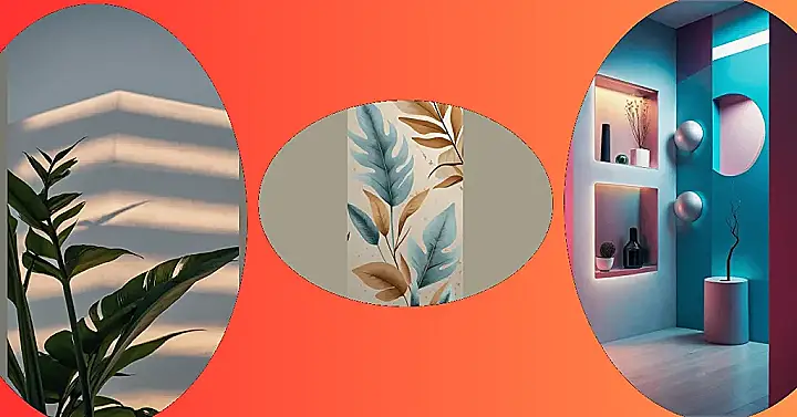Check out this wallpaper – it’s so minimalist, it’s practically hiding! All those geometric shapes look like a super-secret spy headquarters for plants. Maybe the green leaves are planning a takeover of your bedroom, but at least they’re doing it in style with that classy blue circle hanging above them.