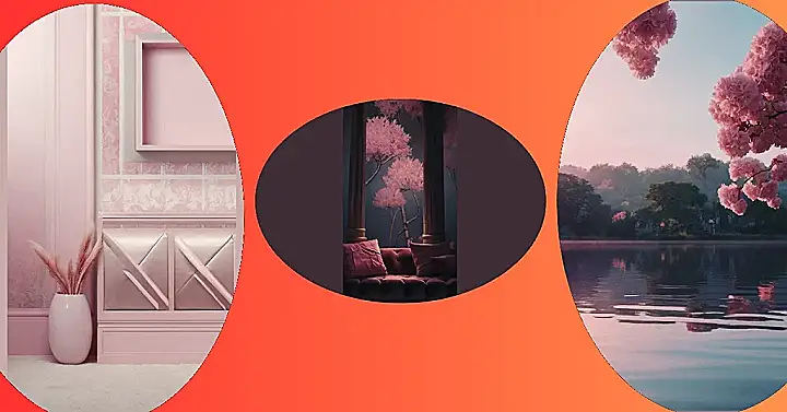 This picture is like stepping into a dreamy fairytale! The pink wallpaper, with its branches reaching out like fingers, looks almost magical. It’s like a secret garden that only you know about, hidden behind those plush velvet curtains.