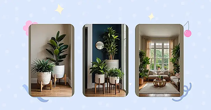 These plants are seriously stylish! Check out how much personality these simple plant stands add to these already awesome indoor plants. It’s like giving your green friends a little wooden throne, which just elevates their whole vibe. Imagine having your leafy buddies looking this good—it’s the ultimate indoor jungle upgrade, even if your jungle only has three members.