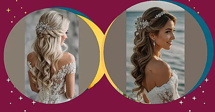 Wedding bells might seem ages away, but thinking about the perfect hair for the big day in 2025 is way more fun than homework! Look at the style in this picture – those flowing waves and that gorgeous sparkly headband are goals. It’s the perfect balance: half-up so it stays put for dancing like nobody’s watching, and half-down because, well, who doesn’t love fabulous waves? Definitely a style that screams ‘beautiful bride’ without screaming ‘I spent six hours in a salon chair!’