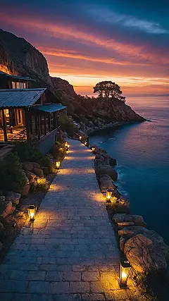 Imagine this: the sun’s dipping below the horizon, painting the sky in fiery oranges and deep purples. You’re strolling along a cozy stone path, lanterns casting a warm, magical glow. It’s like something out of a fairytale, but even better because it’s totally real! This isn’t your average walk; it’s a journey to ultimate chill-ville. The air is calm, the ocean whispers secrets, and you’re so relaxed you could probably fall asleep standing up (but don’t, you might miss the amazing sunset!).