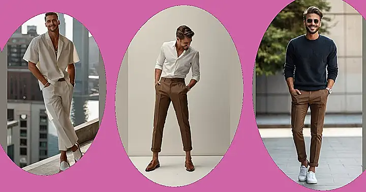 This guy’s got the “I woke up like this” look down pat! A comfy sweater, some cool brown pants, and stylish white sneakers – it’s the perfect outfit for a day out with friends. He’s got the confidence to rock it too, with a smile that could melt glaciers! Maybe this is the secret to being a fashion-forward dude.