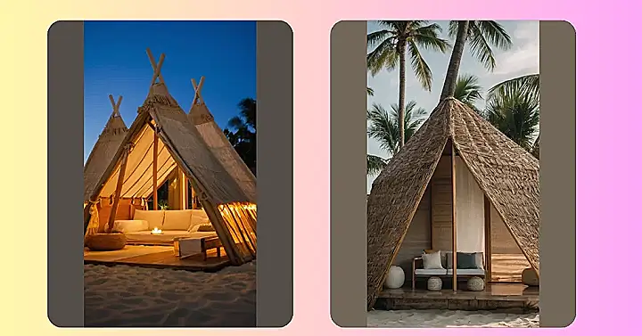 Check out these adorable A-frame cabanas! They’re like tiny beach houses, perfect for a relaxing getaway. Imagine yourself sipping lemonade, toes in the sand, while reading your favorite book inside your own little paradise. They’re so cute, you’ll want to build a whole village of them, and maybe even add a volleyball net for some friendly competition!