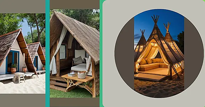 Check out these adorable A-frame cabanas! They’re like tiny beach houses, perfect for a relaxing getaway. Imagine yourself sipping lemonade, toes in the sand, while reading your favorite book inside your own little paradise. They’re so cute, you’ll want to build a whole village of them, and maybe even add a volleyball net for some friendly competition!