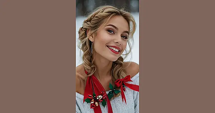 Seriously though, this hairstyle is super festive and stylish all at once. It’s not too complicated, so even if you’re not a hair wizard, you could probably manage something similar. Think soft waves, a touch of sparkle, and a bold bow – you can even adjust the colors to match your outfit! It’s the perfect way to get into the holiday spirit and look amazing doing it.