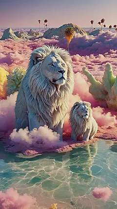 Thinking your iPhone screen is looking a bit… basic? Get a load of this scene! It’s got giant white lions hanging out on fluffy pink clouds like they own the place, surrounded by water that looks too cool to be real. It’s like a totally wild fever dream decided to become a picture. Putting this as your wallpaper pretty much guarantees your phone screen is the most legendary thing anyone sees all day, no matter who you are or what lame notifications pop up.