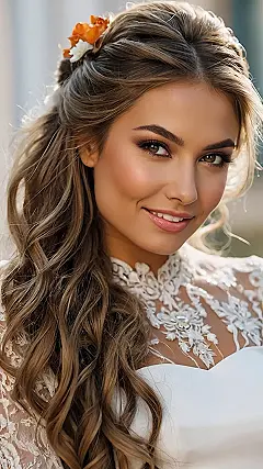 So, your friend is getting hitched, and you need a killer hairstyle that says, “I’m here to celebrate, not steal the show” (because, let’s be real, that’s a thing). This picture has totally got you covered. You get the best of both worlds – a little bit of fancy with the pinned-up section at the top, and some chill vibes with the flowing waves. It’s like saying, “I’m ready to party, but I also brought my good manners.”
