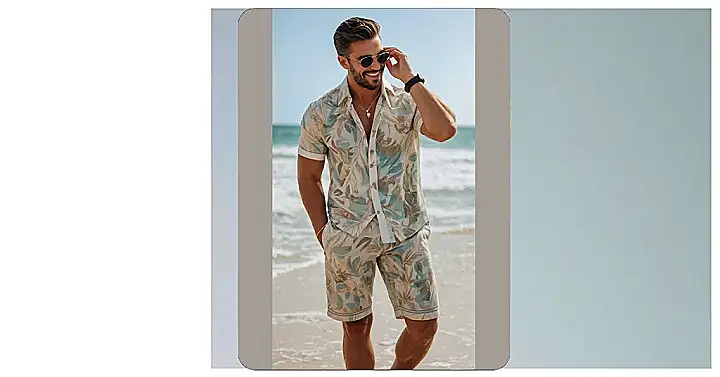 Check out this dude! He’s rocking the perfect summer shirt (and shorts!) for maximum chill vibes. If looking this good on vacation was a class, he’d definitely be acing it. Forget packing boring t-shirts, this guy knows the secret to summer style: a cool, breezy button-down that screams “I’m on vacation, and I don’t care who knows it!”