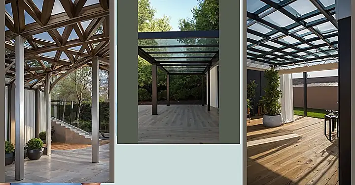 Imagine hanging out under this canopy, sipping iced tea and totally dodging the sun’s glare! It’s like a fancy-pants hat for your patio, keeping things chill while looking super sleek. The wood and glass combo gives it a modern, natural vibe, kind of like bringing the outdoors indoors, but in a really stylish, not-muddy-boots kind of way.