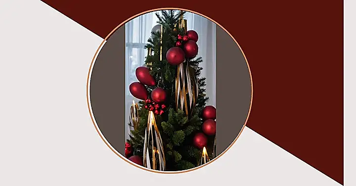 The way those red ornaments are clustered together makes them look like sparkly, festive berries on the tree. And those few olive green ones? They’re like the tree’s secret super cool friends, showing that even the most festive of trees like to mix it up a bit! The whole thing is such a fun, quirky take on traditional Xmas decorations, it’s practically bursting with holiday cheer.