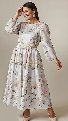This floral frock is seriously dreamy! Imagine twirling in this gorgeous dress – it’s like walking through a beautiful garden. The colors are so soft and pretty, and the flowers are just the right amount of “wow” without being too much. It’s the perfect outfit for a spring picnic, a fancy tea party, or even just hanging out with friends – you’ll feel like a total princess!