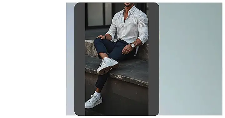 Check out this guy in the picture. He’s got that effortless cool thing going on, right? Turns out, looking sharp like this is actually one of the latest trends for guys. It’s all about keeping it simple but polished. Think a crisp white shirt that fits just right – not too baggy, not too tight – paired with some killer brown or tan pants. It’s like your basic clothes decided to hit the gym and got way fitter. This look says “Yeah, I know what’s up,” without needing a whole costume change for every outing.