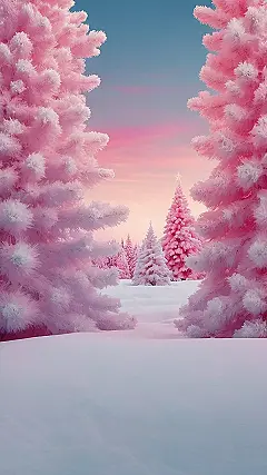 **Paragraph 1:** OMG, check out this Christmas wonderland! It’s like Santa traded his red suit for a fluffy pink one and decided to decorate the North Pole with cotton candy trees. Seriously, these pink, snow-dusted fir trees are the cutest thing ever! They’re twinkling with little lights, and there’s even a sparkly snowflake on top of the main tree – way more stylish than a traditional star, right? I bet even the grumpiest Grinch would crack a smile at this scene.